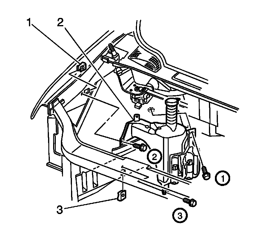 1. Install new grommets into the washer container for the wiper washer pumps.