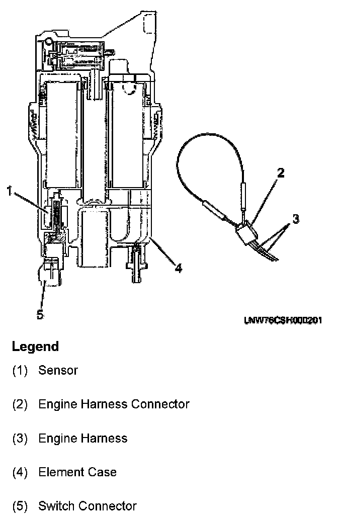 1. Check that there is continuity between the switch connector terminals when the float in the fuel sedimenter is above the water drain line.
