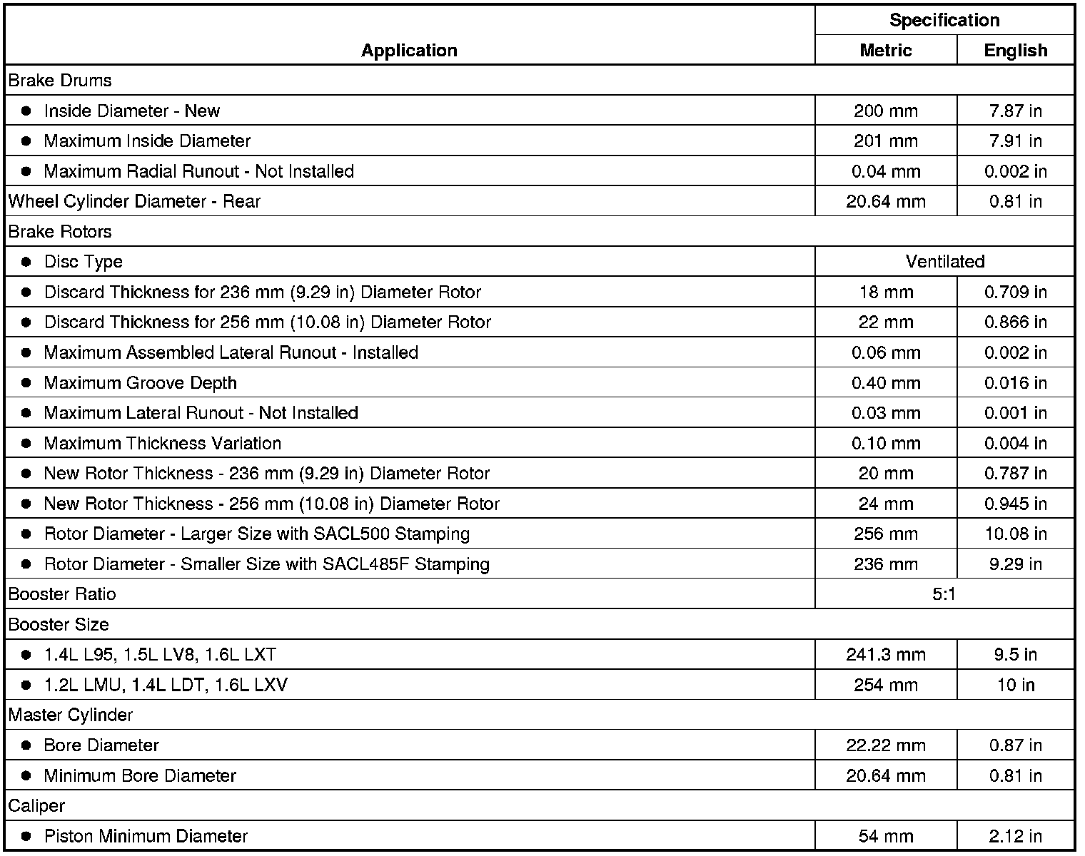 Brake System Specifications