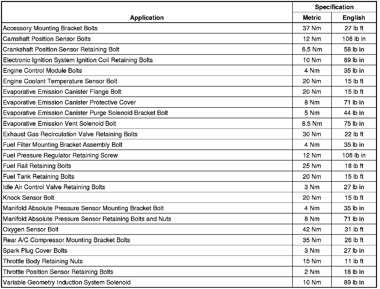 Fastener Tightening Specifications