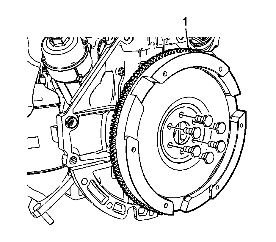 1. Install the flywheel (1).