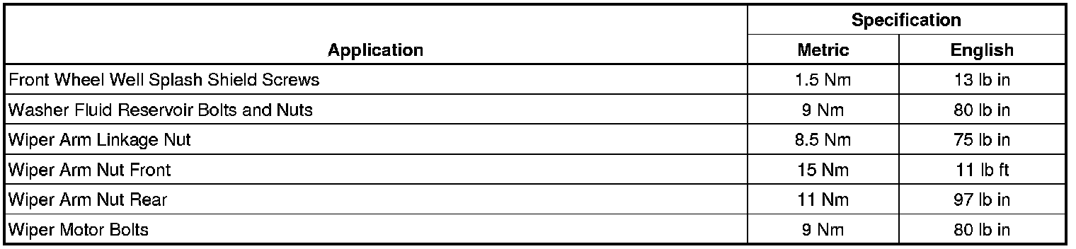 Wiper and Washer Systems: Specifications