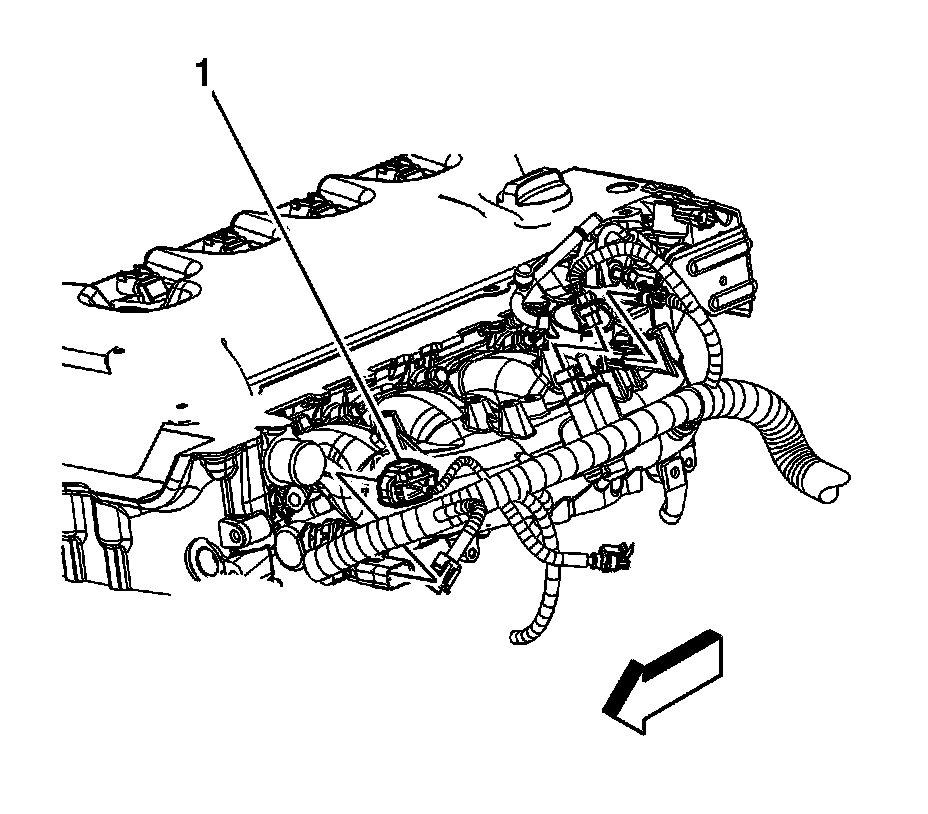 20. Disconnect the engine wiring harness electrical connector (1) from the crankshaft position (CKP) sensor.