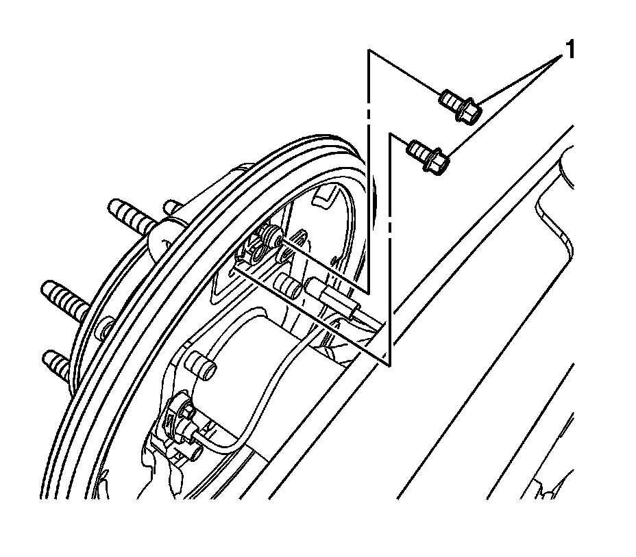 2. Install the wheel cylinder bolts (1) and tighten to 18 Nm (13 lb ft).