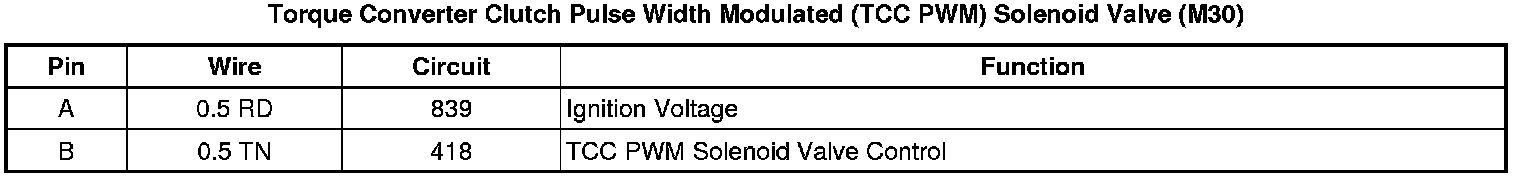 Torque Converter Clutch (TCC) Solenoid Valve (M30)