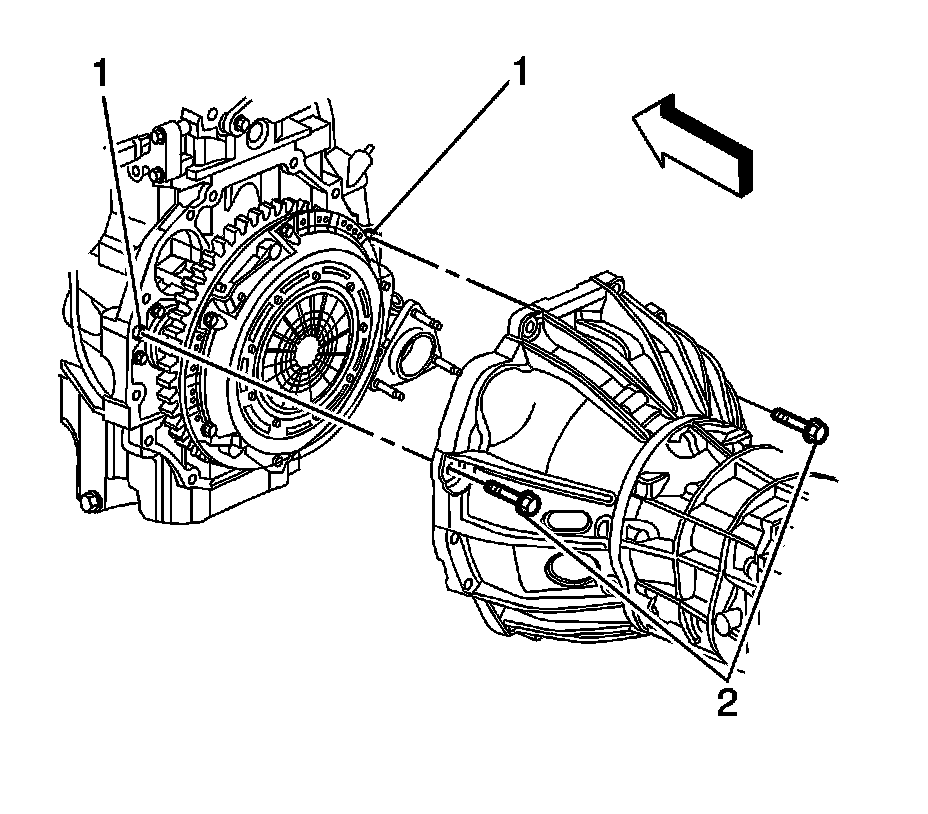 66. Remove the remaining transmission mounting bolts (2).