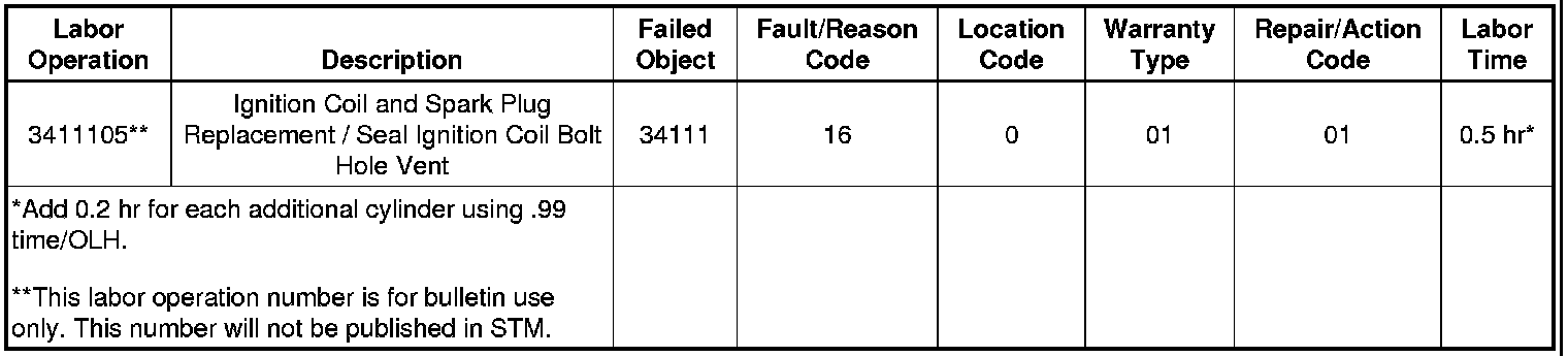 This condition may be caused by an engine being exposed to a large quantity of water, which may result in some of the water seeping down past the vented threads of an ignition coil bolt, then flowing through the vent opening that is located in the bottom of the related ignition coil bolt hole, and collecting in the spark plug recess area.