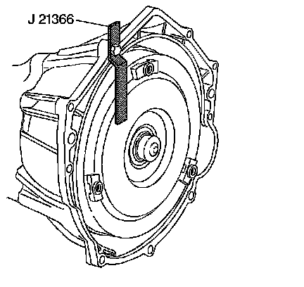 28. Install the J 21366 onto the transmission bell housing to retain the torque converter.