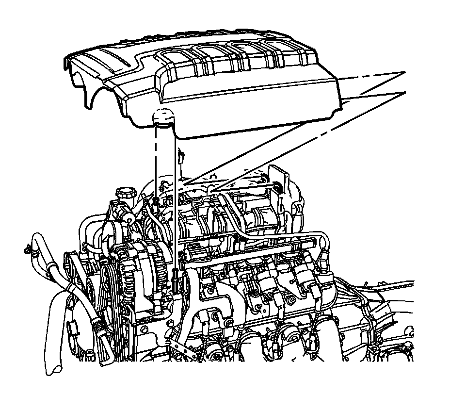 5. Gently push down on the intake manifold sight shield over the grommets, seating the intake manifold sight shield.