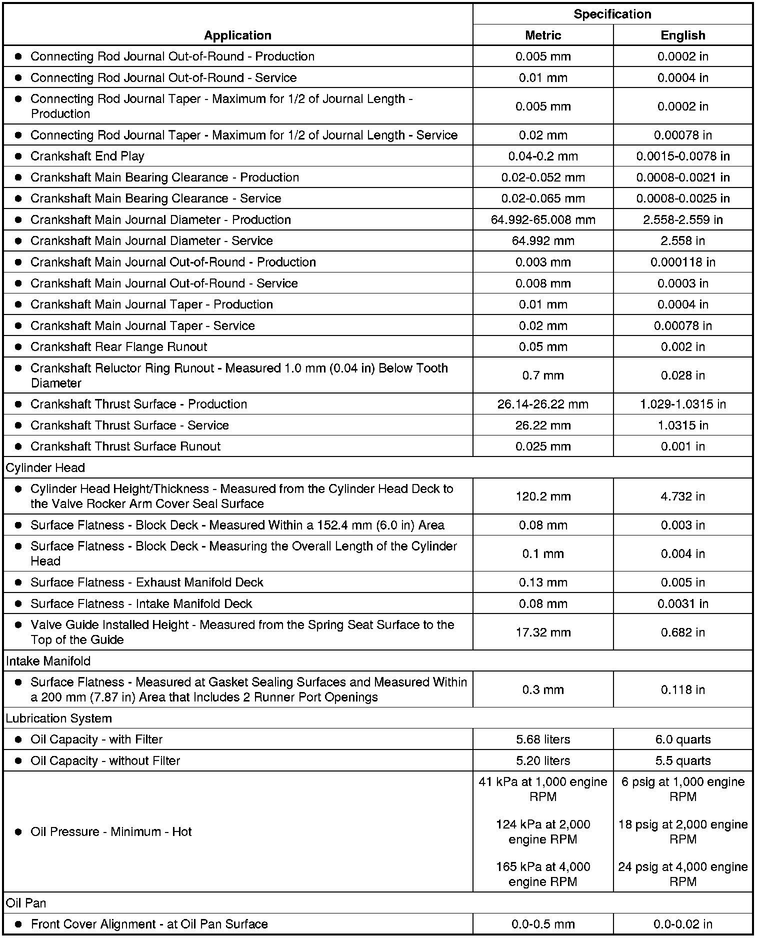 Engine Mechanical Specifications