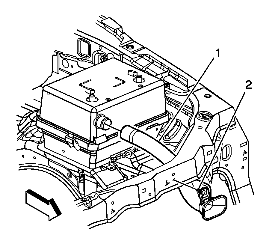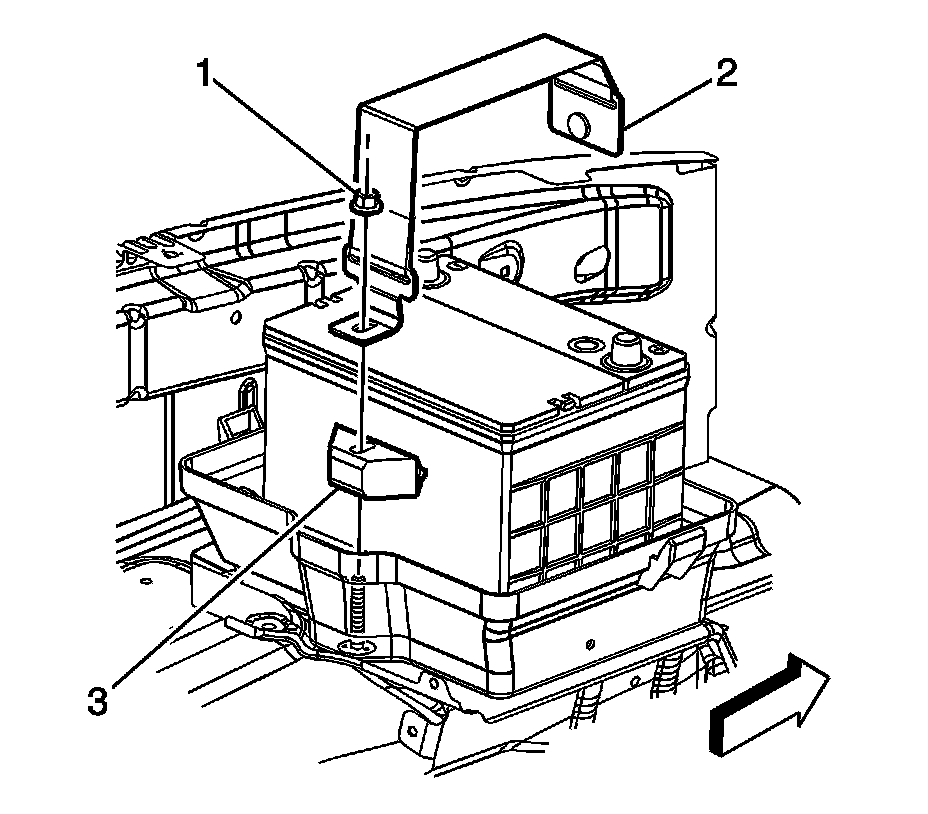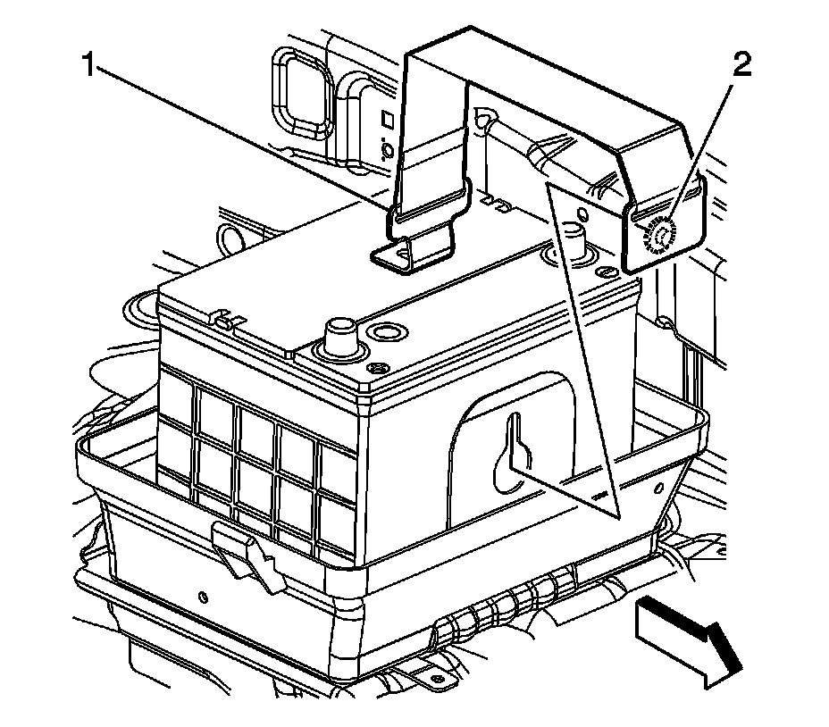 3. Install the battery tray strap (2).