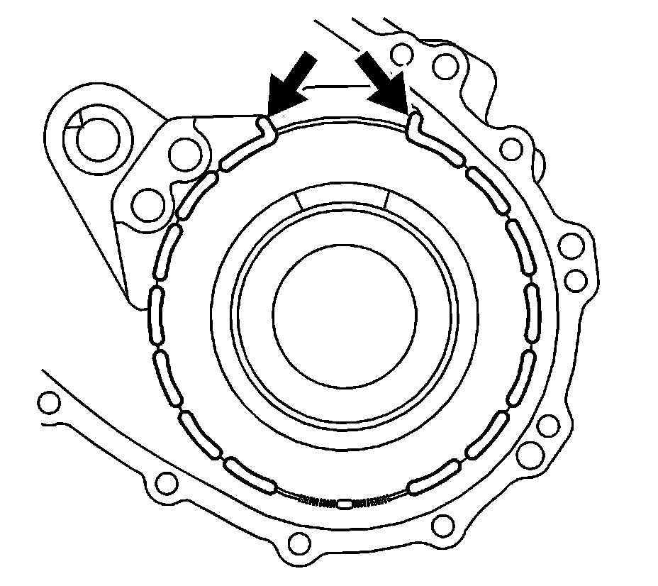 82. Apply a 3 mm (1/8 in) bead of flange sealant GM P/N 12378517 (Canadian P/N 88900757) to the sealing flange on the rear case half. Apply the sealer evenly to the inside surface of the bolt holes, with no gaps.