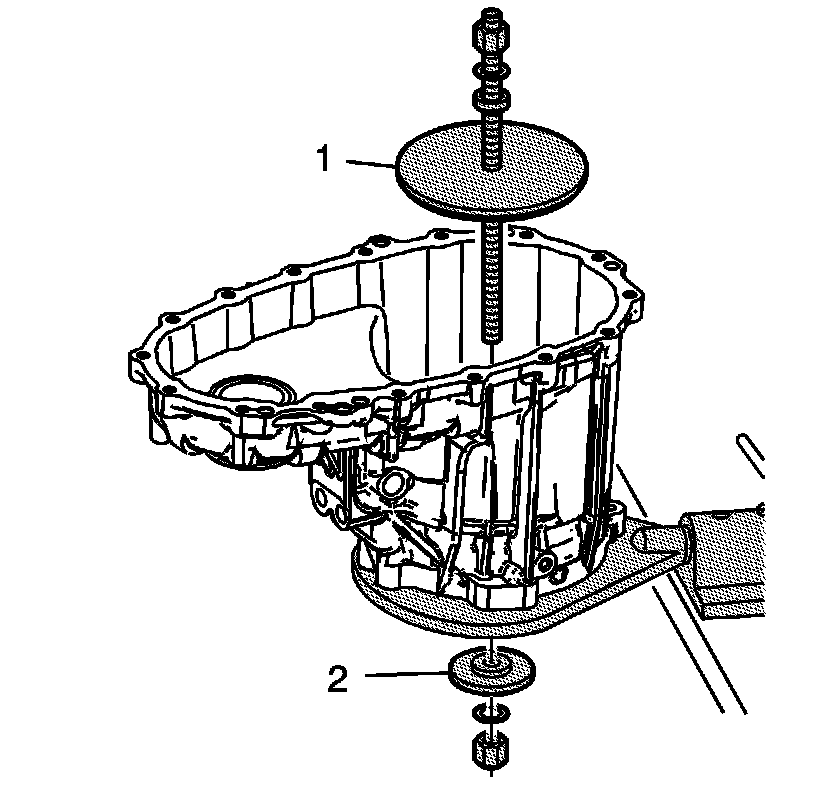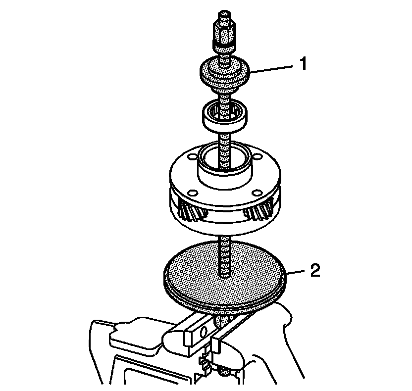 23. Using the J 45933-2 (1) and the J 45933-3 (2) of the J 45933 - assembly/disassembly kit , compress the dampener under the annulus gear.