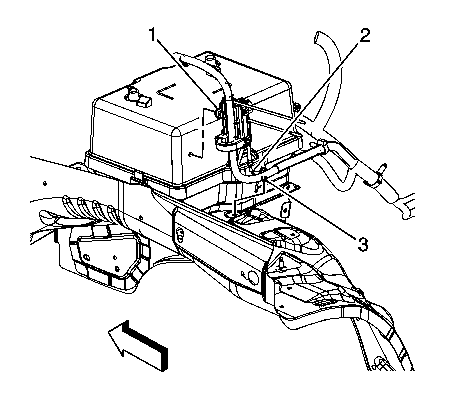 10. Install the bolt (3) securing the negative battery cable ground (2) to the battery tray.