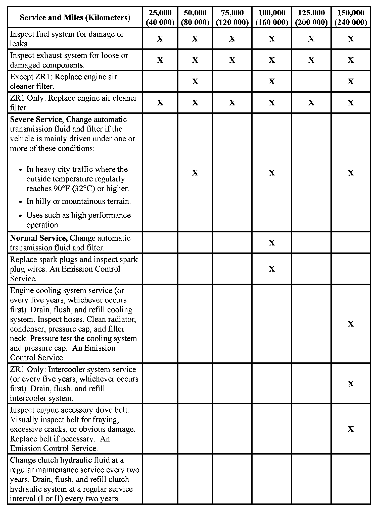 service (I or II) after the indicated miles (kilometers) shown for each item.