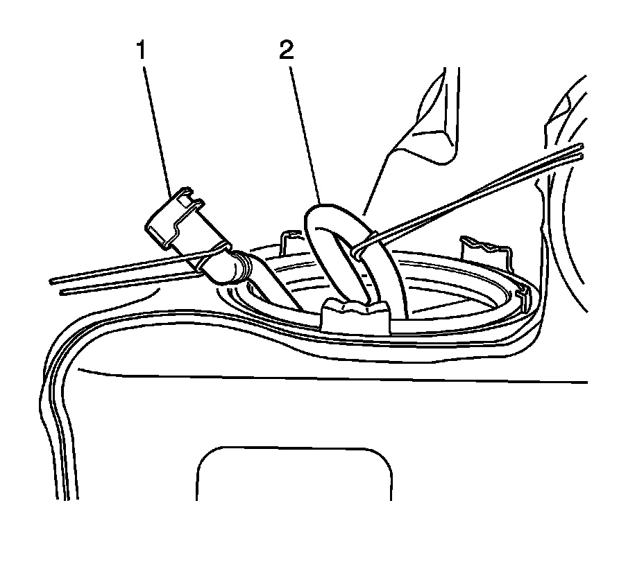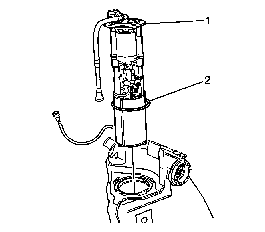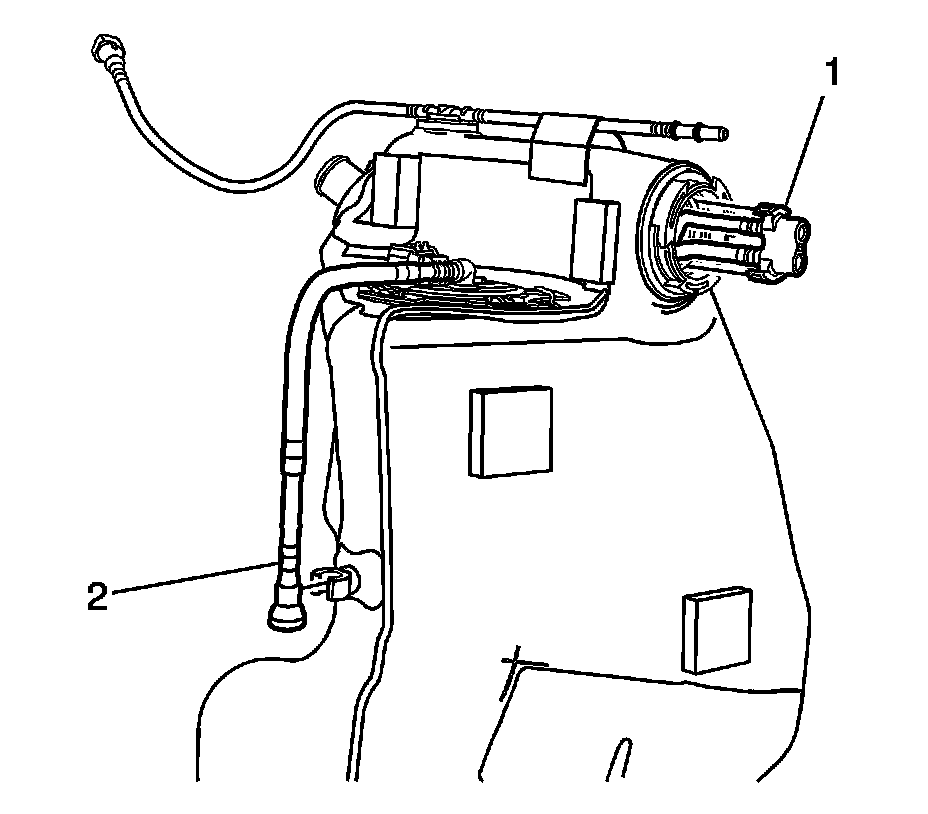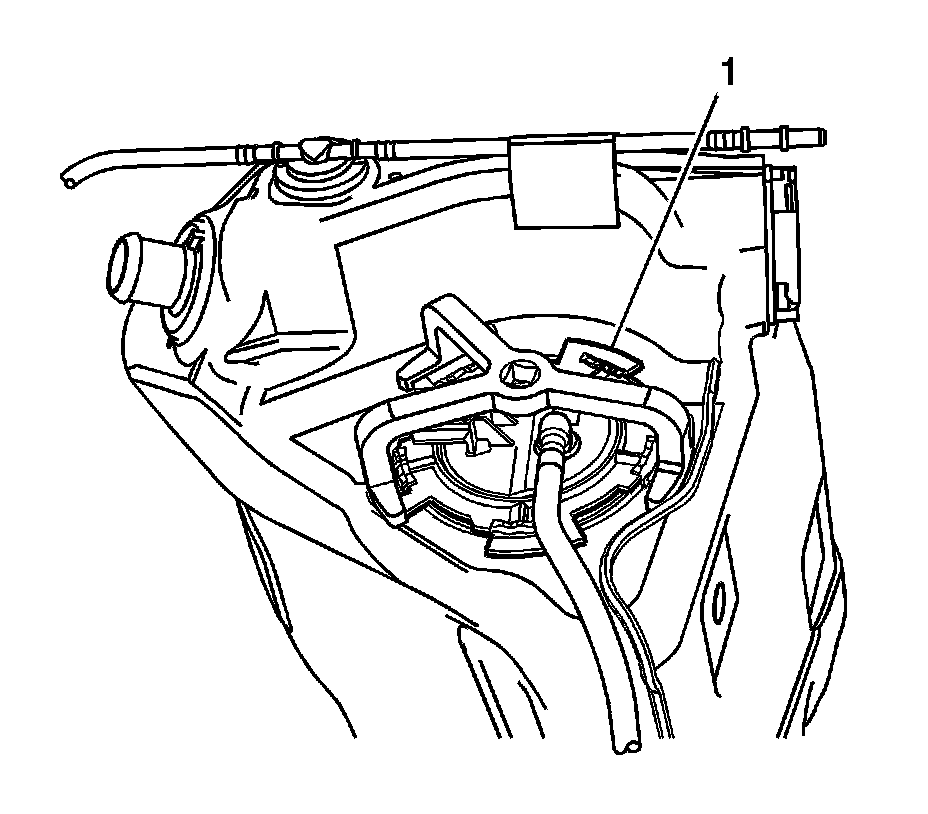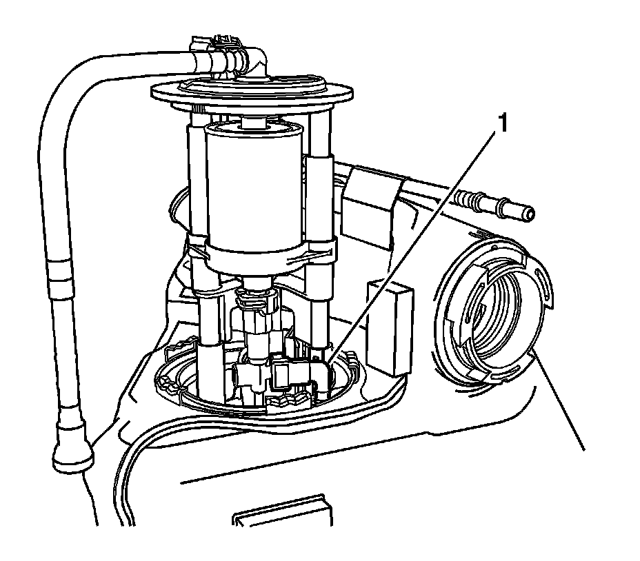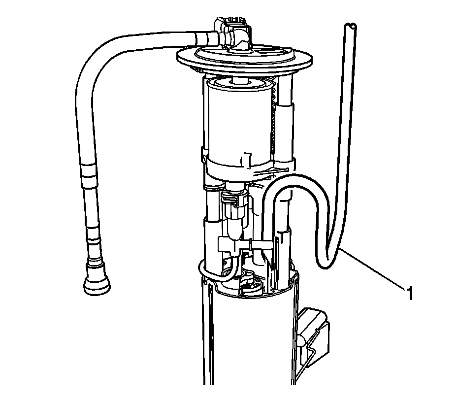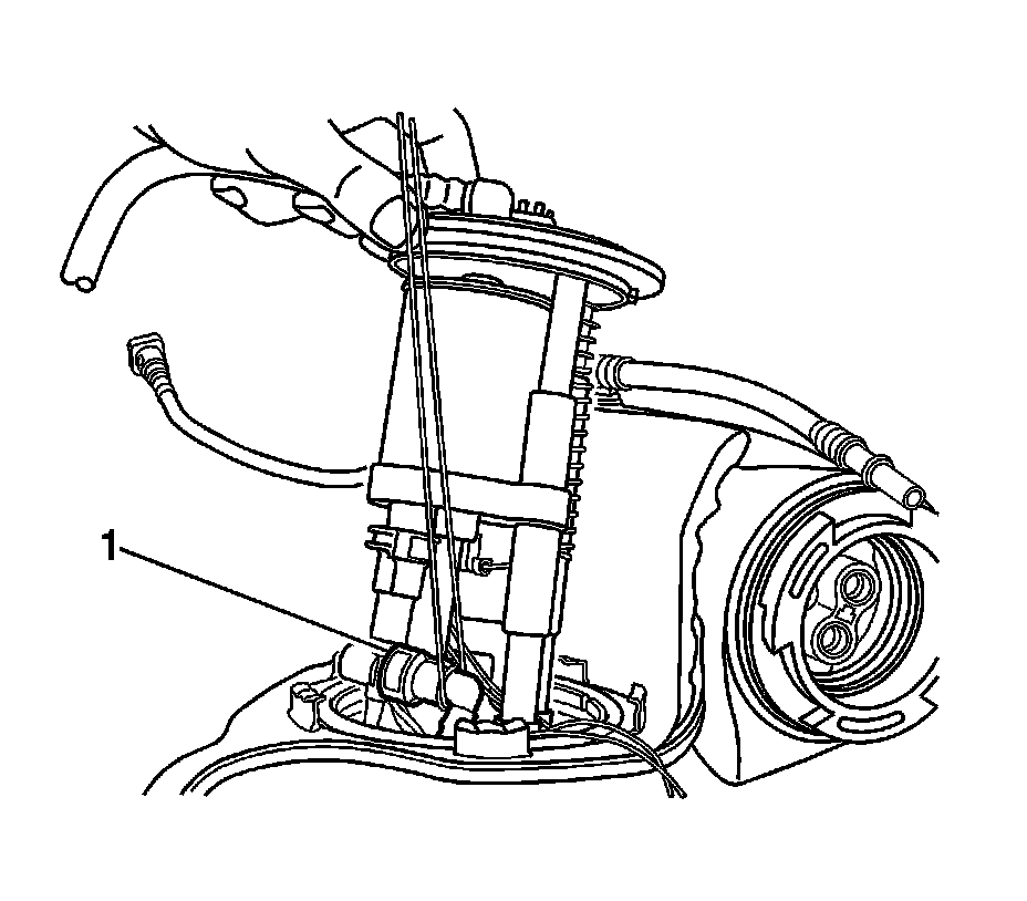 5. Partially raise the fuel pump module from the fuel tank, and disconnect the fuel supply line (1) refer to Plastic Collar Quick Connect Fitting Service (Plastic Collar Quick Connect Fitting Service).