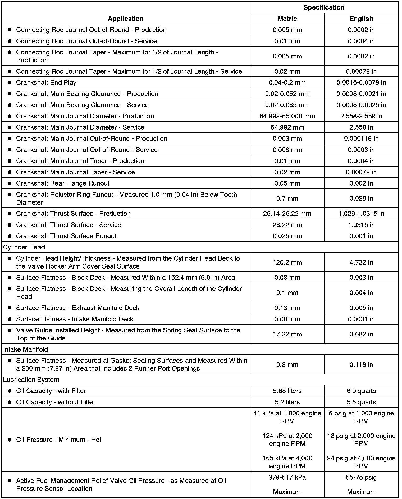 Engine Mechanical Specifications (RPO LMF VIN 4) (5.3L)