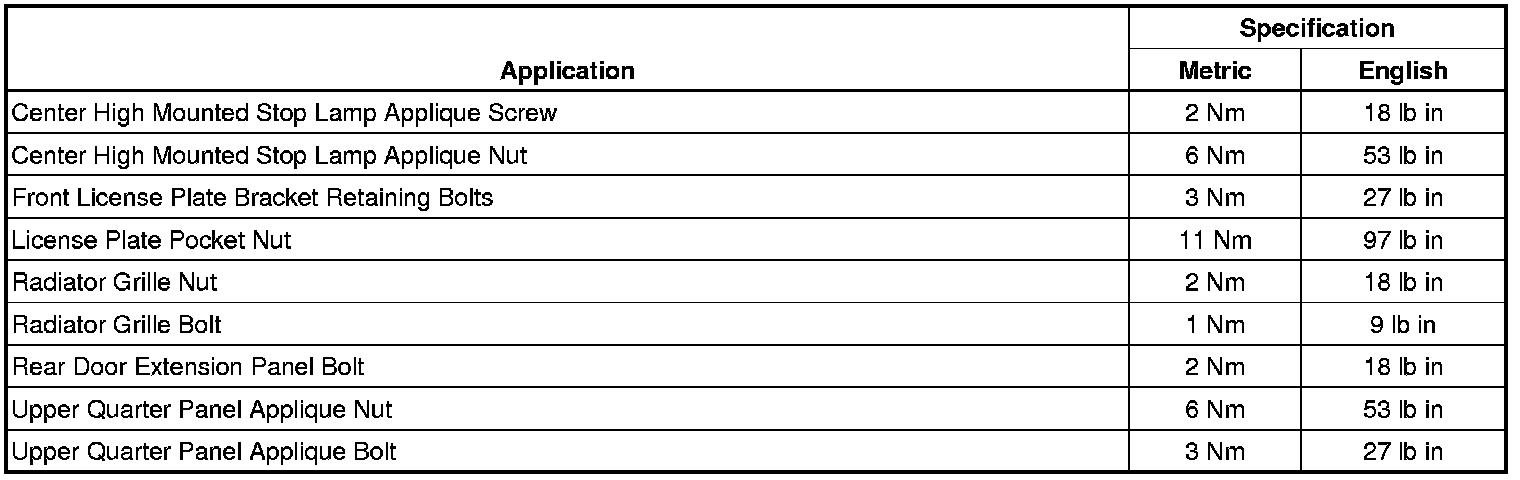 Exterior Moulding / Trim: Specifications