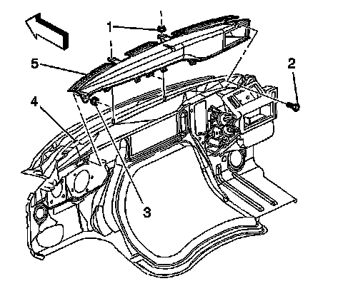 5. Remove the windshield defrost duct (5) from the vehicle.