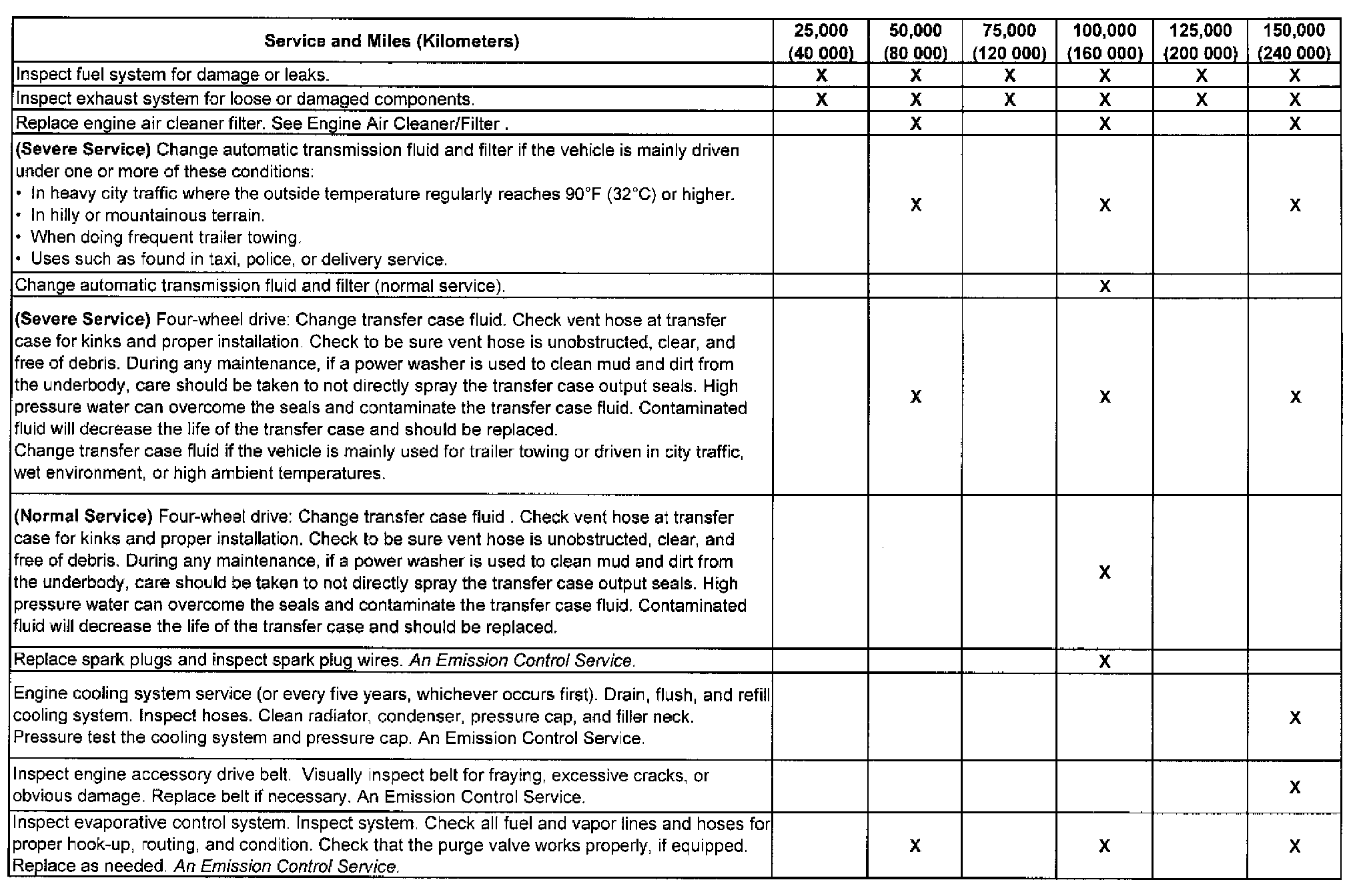 service (I or II) after the indicated miles (kilometers) shown for each item.