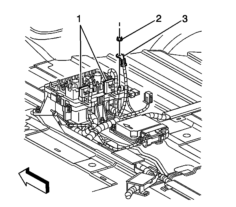 2. Remove the drivers seat. Refer to Driver or Passenger Seat Replacement (Driver or Passenger Seat Replacement).