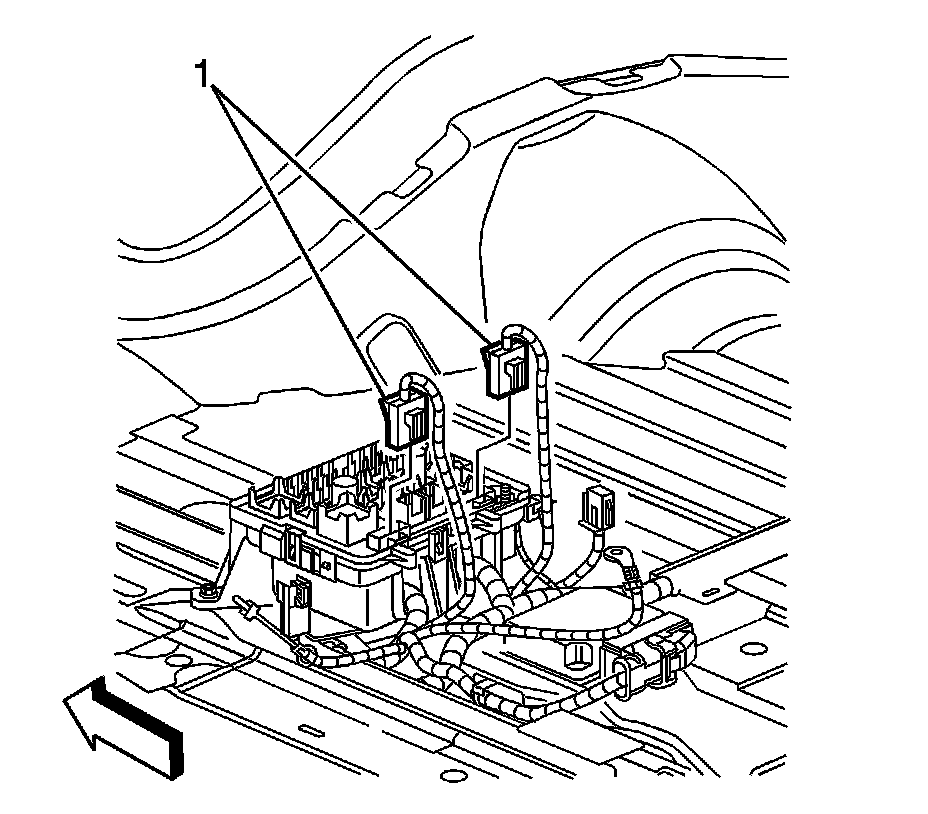 8. Release the tabs that retain the junction block (1) to the junction block base.