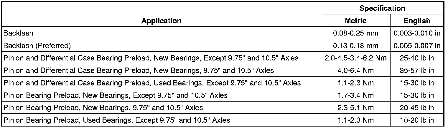 Axle Preload and Backlash Specifications