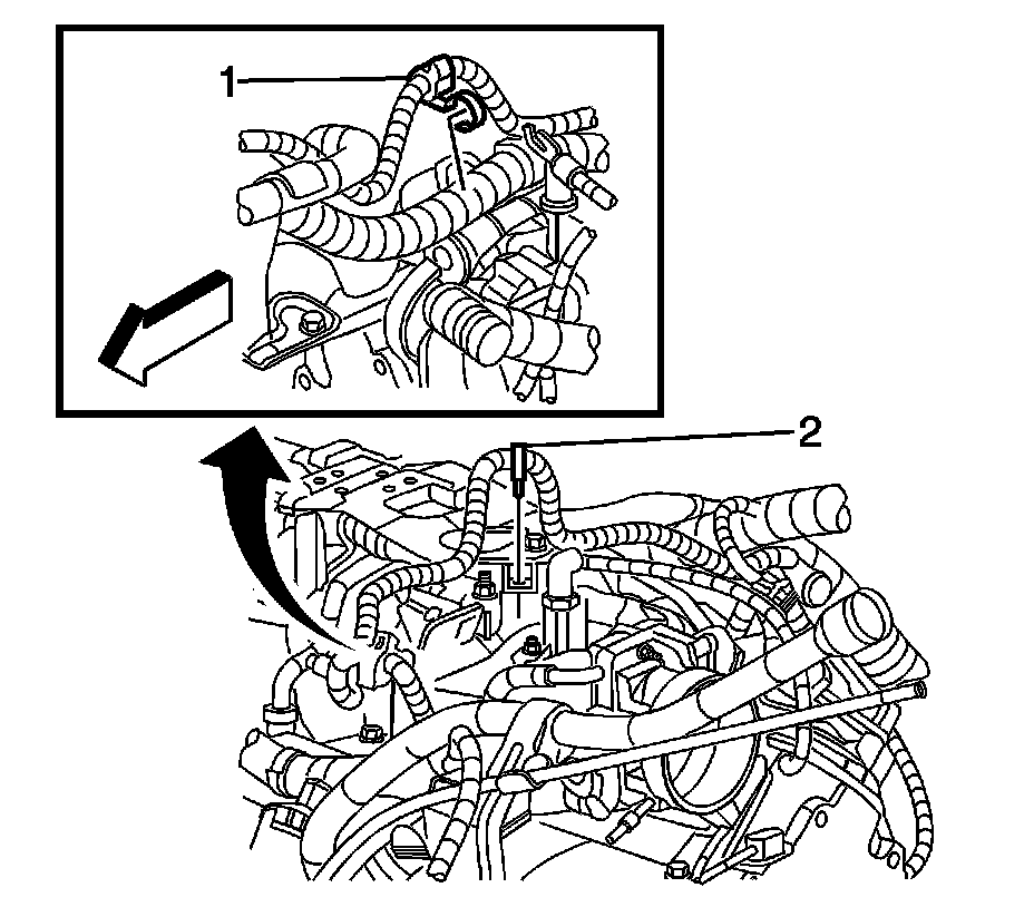 11. On models equipped with 4.8L, 5.3L or 6.0L engine, clip battery positive cable to the engine harness retainer (2).