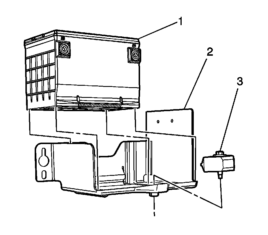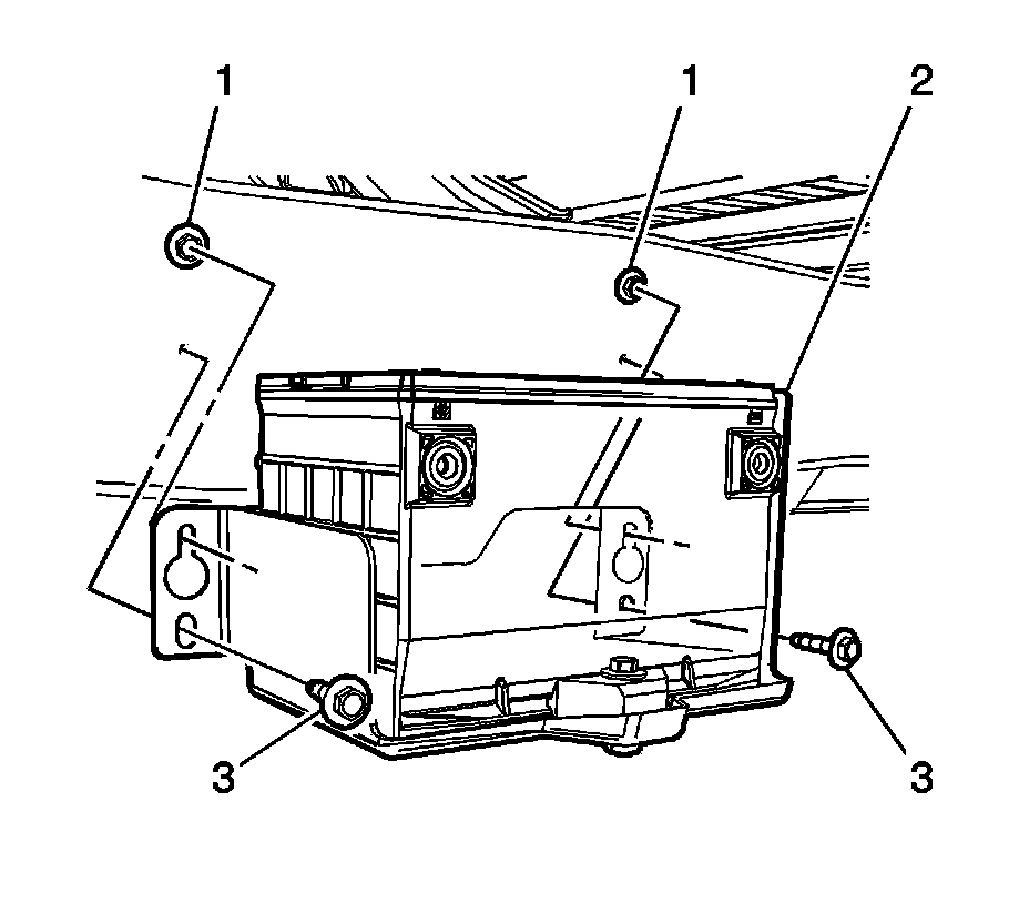 4. Install the lower battery tray bolts (3) and tighten to 25 Nm (18 lb ft).