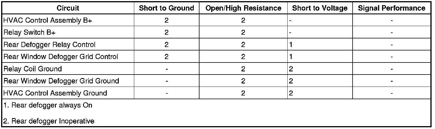 • If the test lamp is always OFF, test the control circuit for a short to ground or an open/high resistance. If the circuit tests normal, test or replace the rear window defogger grid.