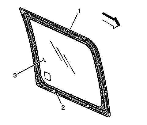 Note: Do not apply the (black #3) primer to the existing bead (1) of the urethane adhesive on the pinchweld flange. Apply the primer only to nicks, scratches or the primed surfaces.
