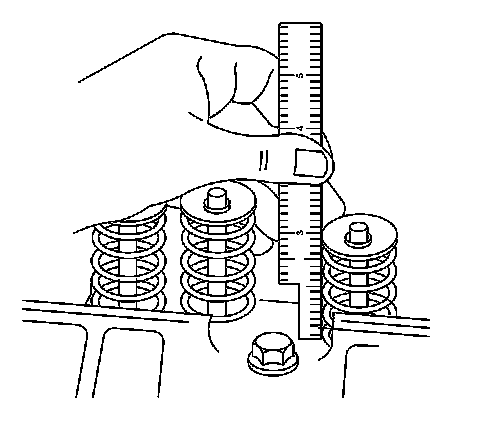 8. Measure the valve installed height using a ruler. Measure from the base of the valve spring to the top of the valve. Refer to Engine Mechanical Specifications (Specifications).