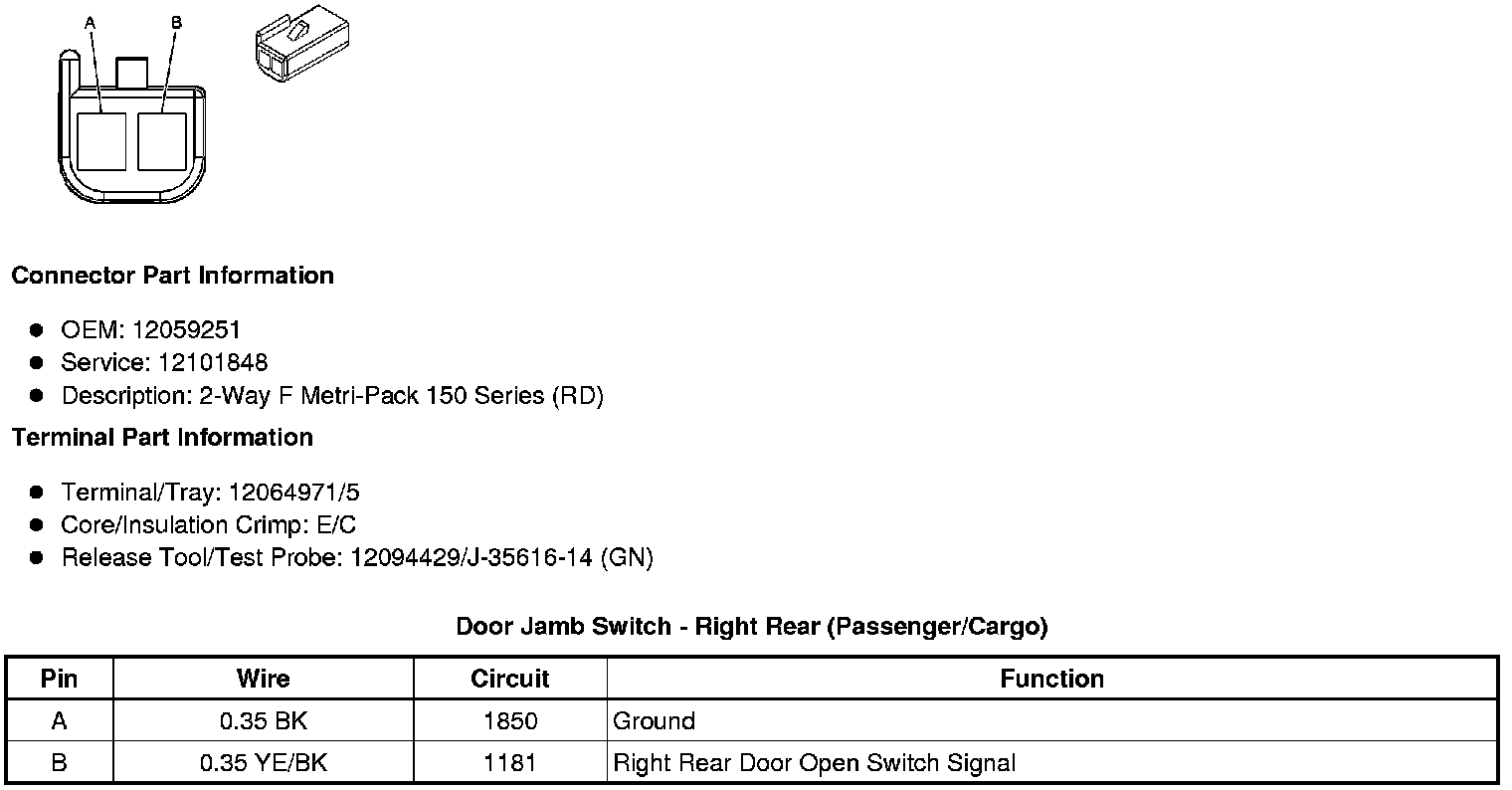 Door Jamb Switch - Right Rear (Passenger/Cargo)