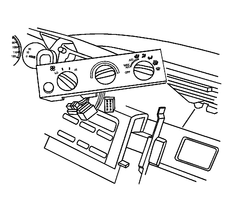 3. Pivot the HVAC control assembly to disengage the locking tab on the right side.