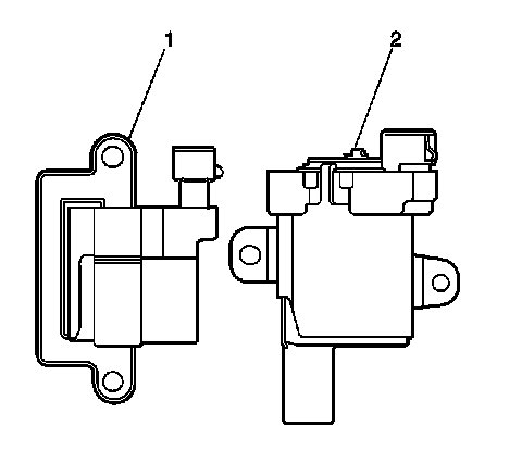 * There are 2 different manufacturers for the ignition coils. the Melco(R) (1) (square design), and the Delphi(R) (2) (round design). These 2 coils use 2 different spark plug wire, and mounting brackets.