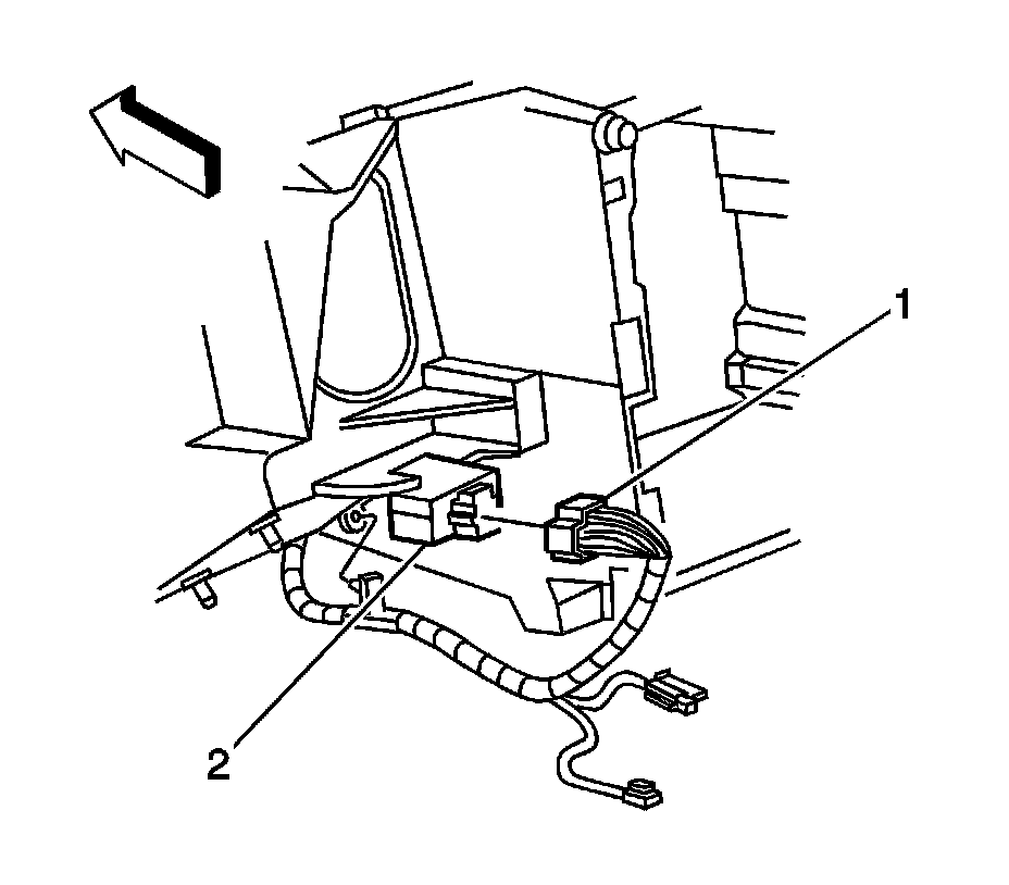 2. Disconnect the multifunction audio alarm module (2) electrical connector (1).