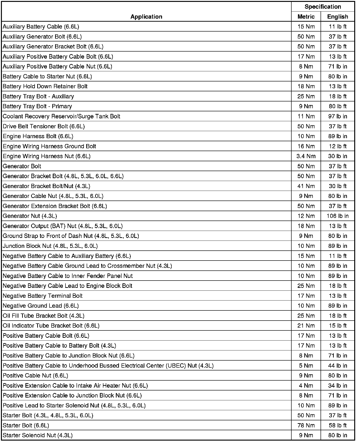 Fastener Tightening Specifications