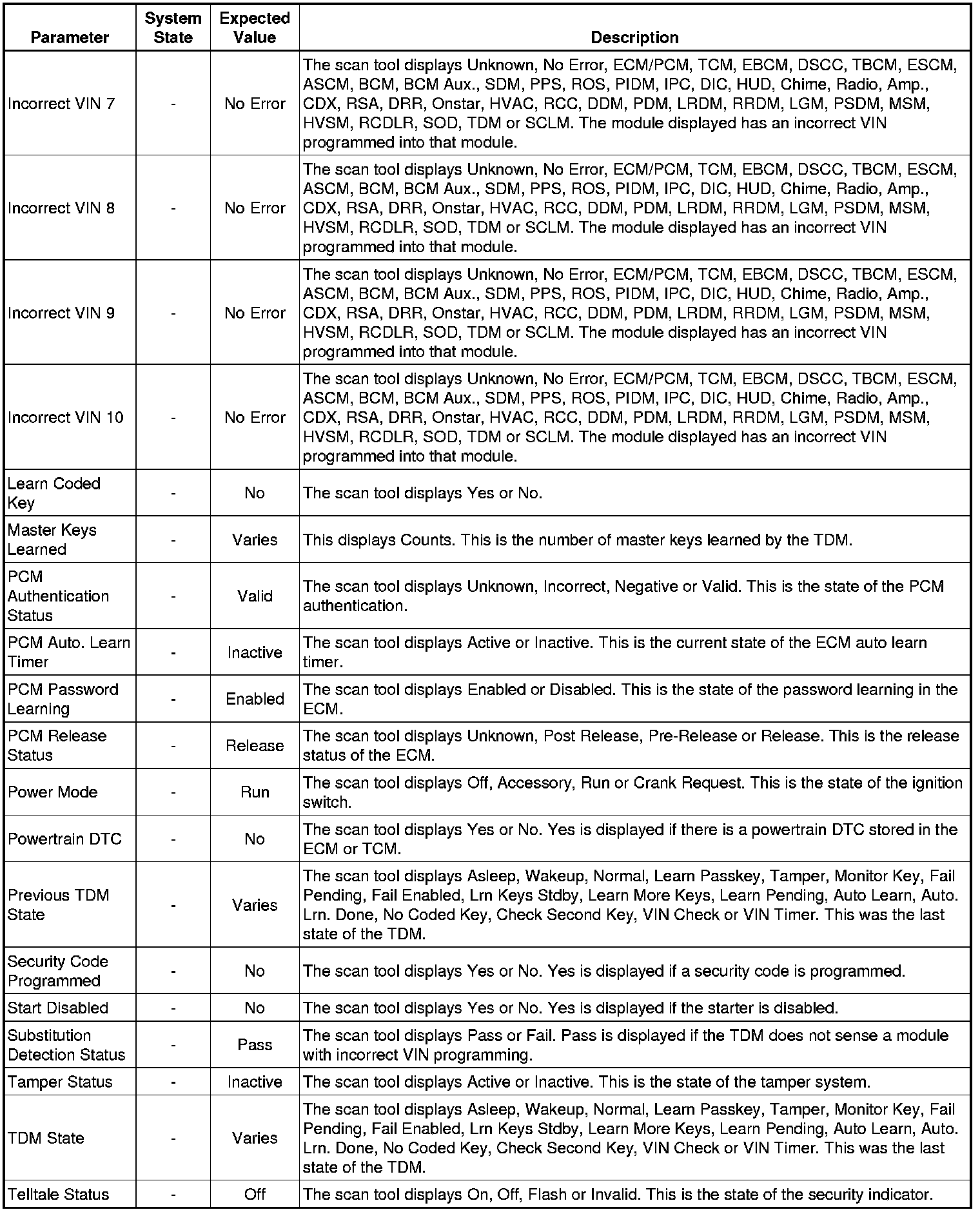 Theft Deterrent Module Scan Tool Information