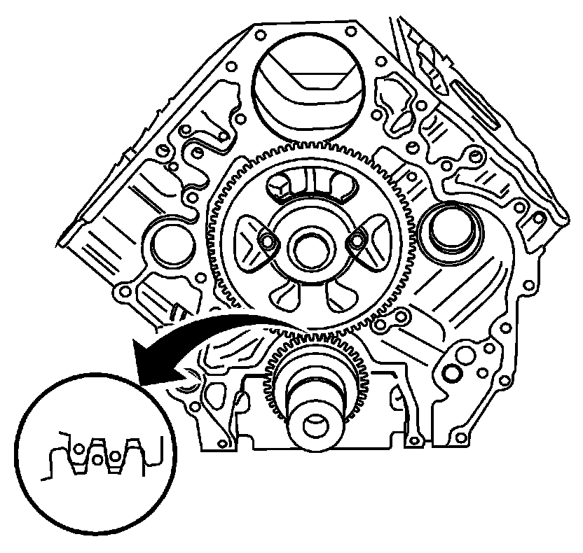 Install the camshaft and gear assembly, aligning the camshaft gear to the crankshaft gear as shown.