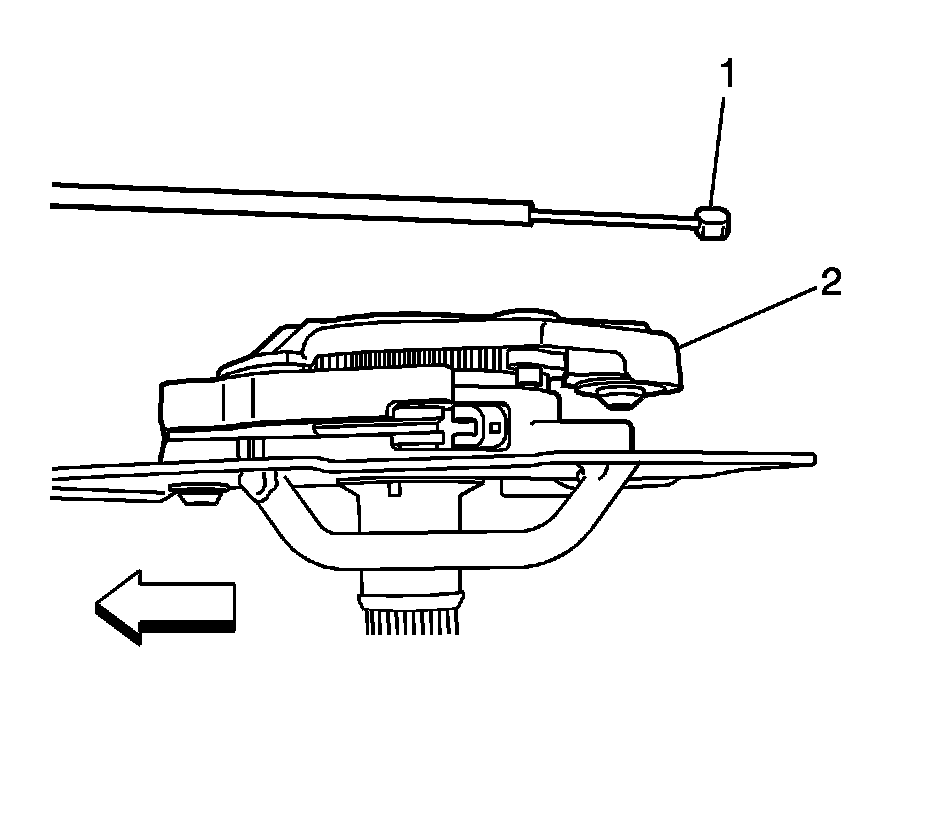 5. Move the lumbar actuator away from the seat far enough to disconnect the lumbar cable (1) from the actuator (2).