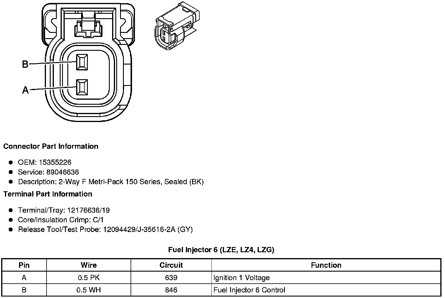 Fuel Injector 6 (LZE-3.5L Flex Fuel, LZ4-3.5L Gas, LZG-3.9L Flex Fuel)