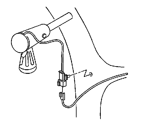 1. Remove the spot lamp wiring harness push-in retainer from the windshield garnish molding, using a small flat bladed tool.