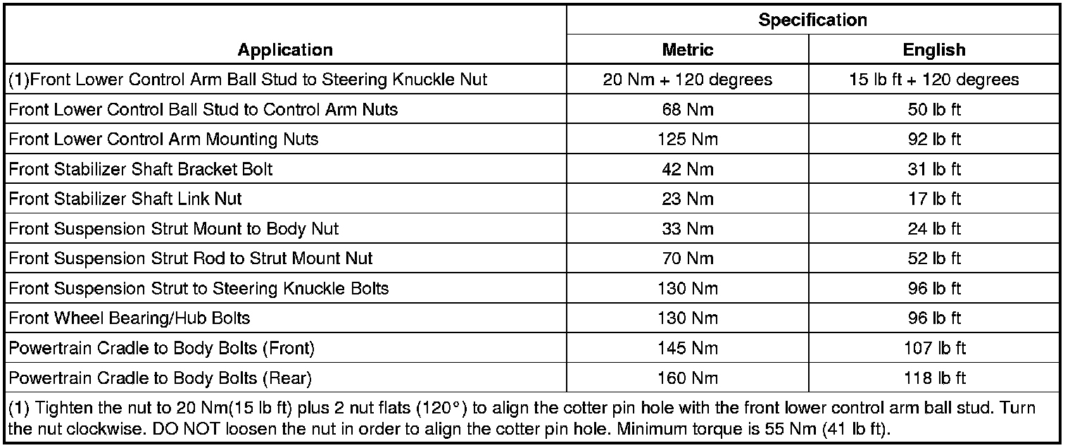 Fastener Tightening Specifications