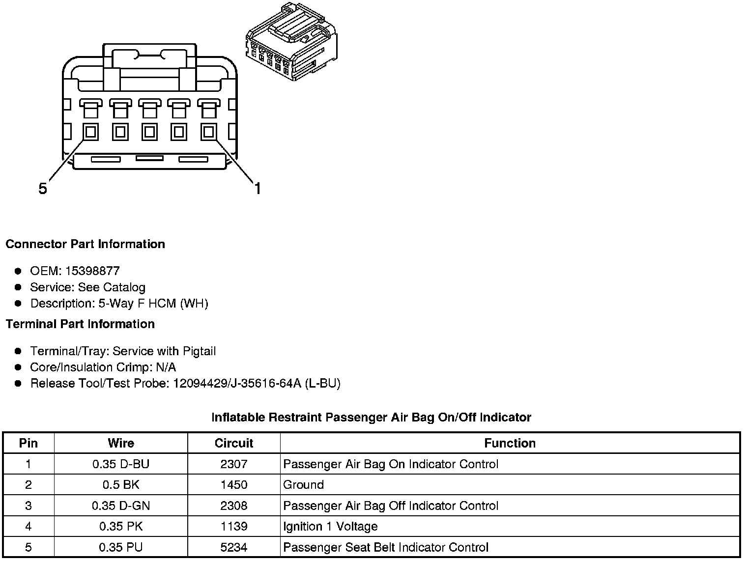 Inflatable Restraint Passenger Air Bag On/Off Indicator