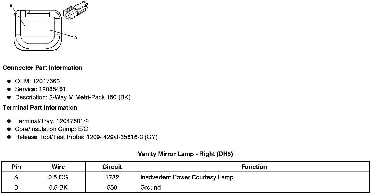 Vanity Mirror Lamp - Right (DH6)