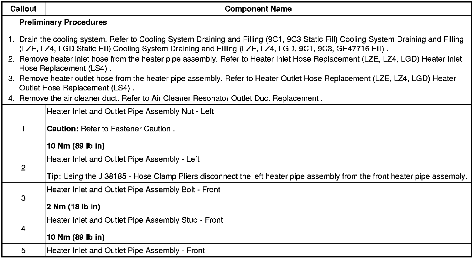 Heater Pipes Replacement (LZE-3.5L Flex Fuel, LZ4-3.5L Gas, LGD-3.9L Flex Fuel)