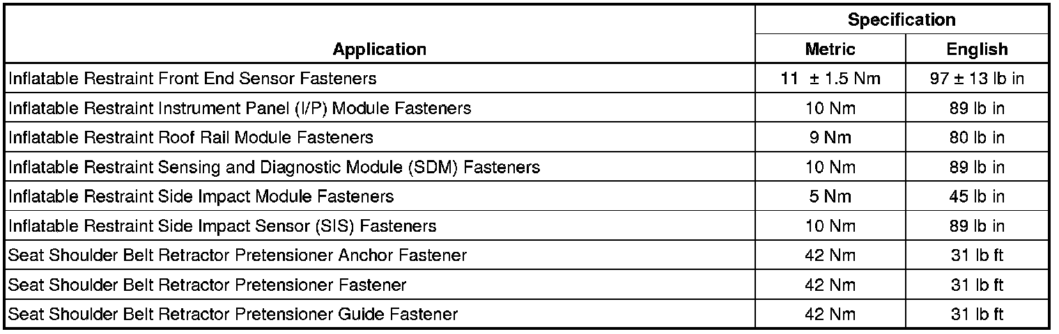 Fastener Tightening Specifications