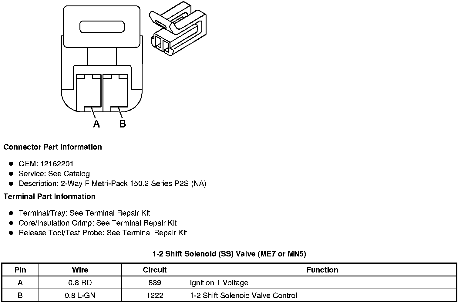 1-2 Shift Solenoid (SS) Valve (ME7 or MN5)