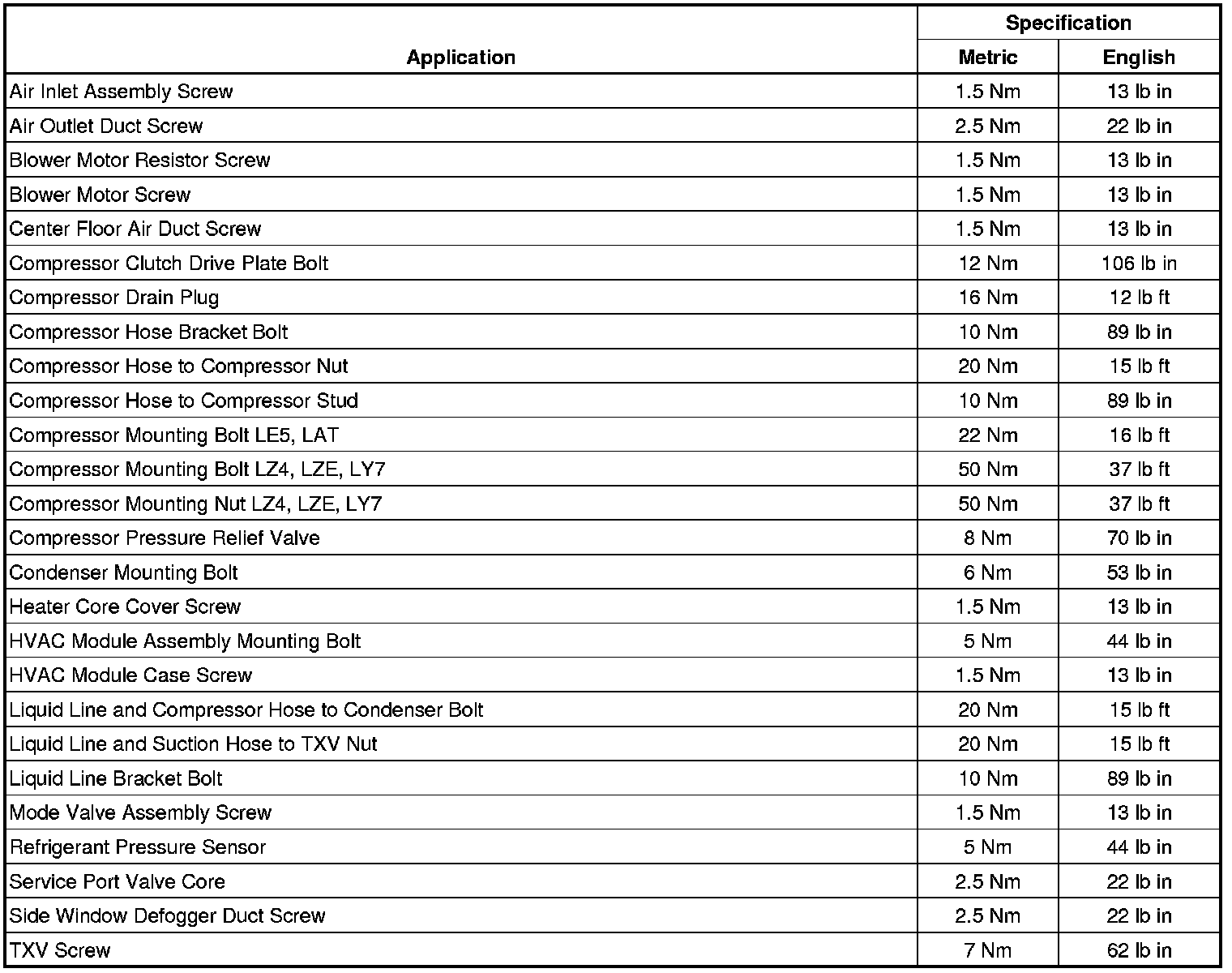 Fastener Tightening Specifications