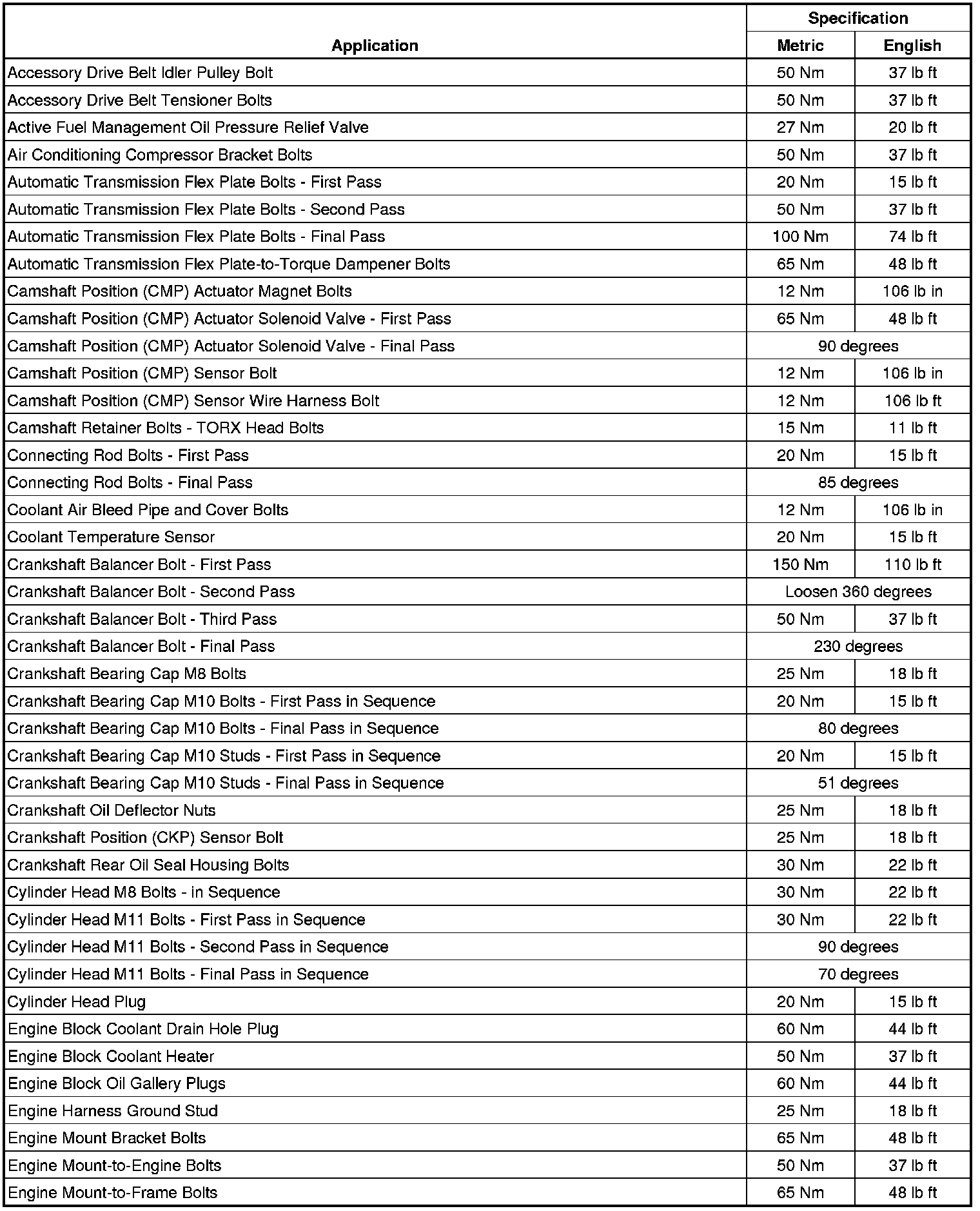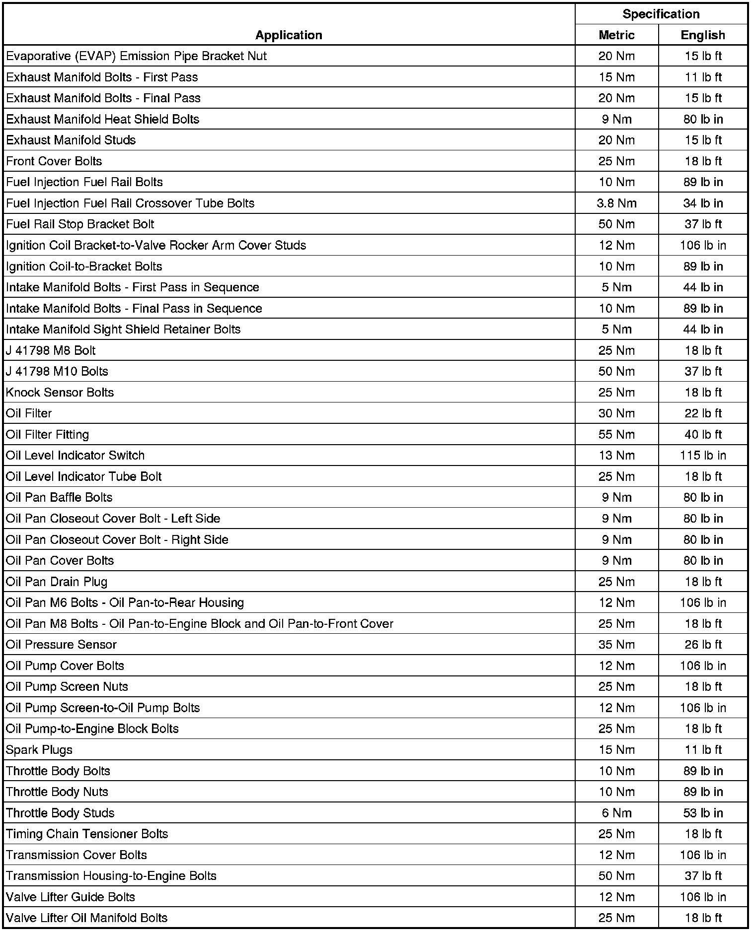 Fastener Tightening Specifications